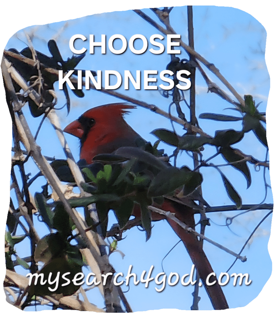 I’m getting sidetracked. Kindness is very important to God. It’s a reflection of His love. We are called to be a light for Him, and to let His character replace our own. Matthew 5:16, “Let your light so shine before men that they may see your good works, and glorify your Father which is in heaven.” We are to yield to the Holy Spirit.